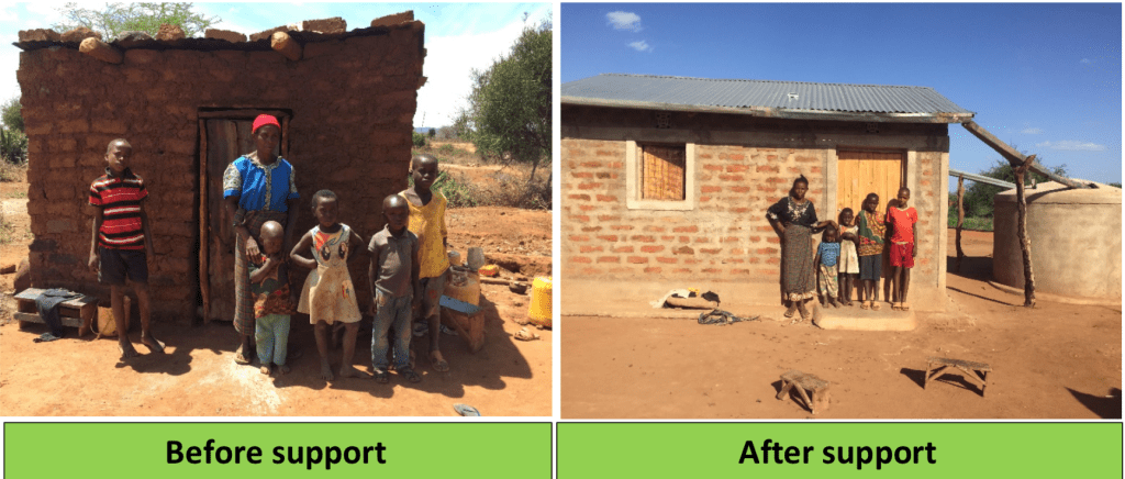 Urvalet av familjer har skett enligt projektets riktlinjer och består av ensamstående mödrar med flera mindre barn eller av föräldralösa barn. I rapportering från Mutomo har vi fått en detaljerad beskrivning av samtliga familjer inklusive bilder av familjerna framför de gamla och nya bostäderna. Rapporter publiceras även på hemsidan under aktuellt.